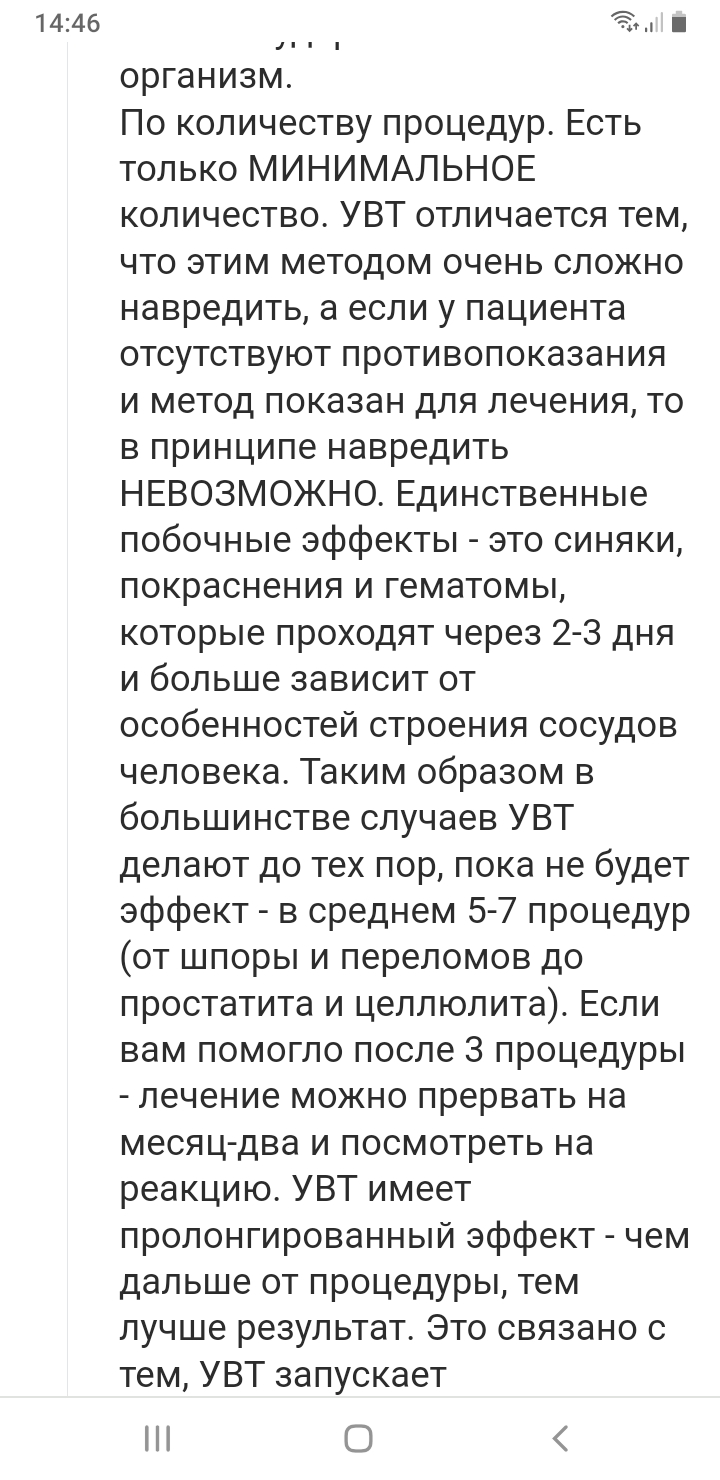 Терапевтический эффект воздействия ударных волн в краткосрочном периоде: